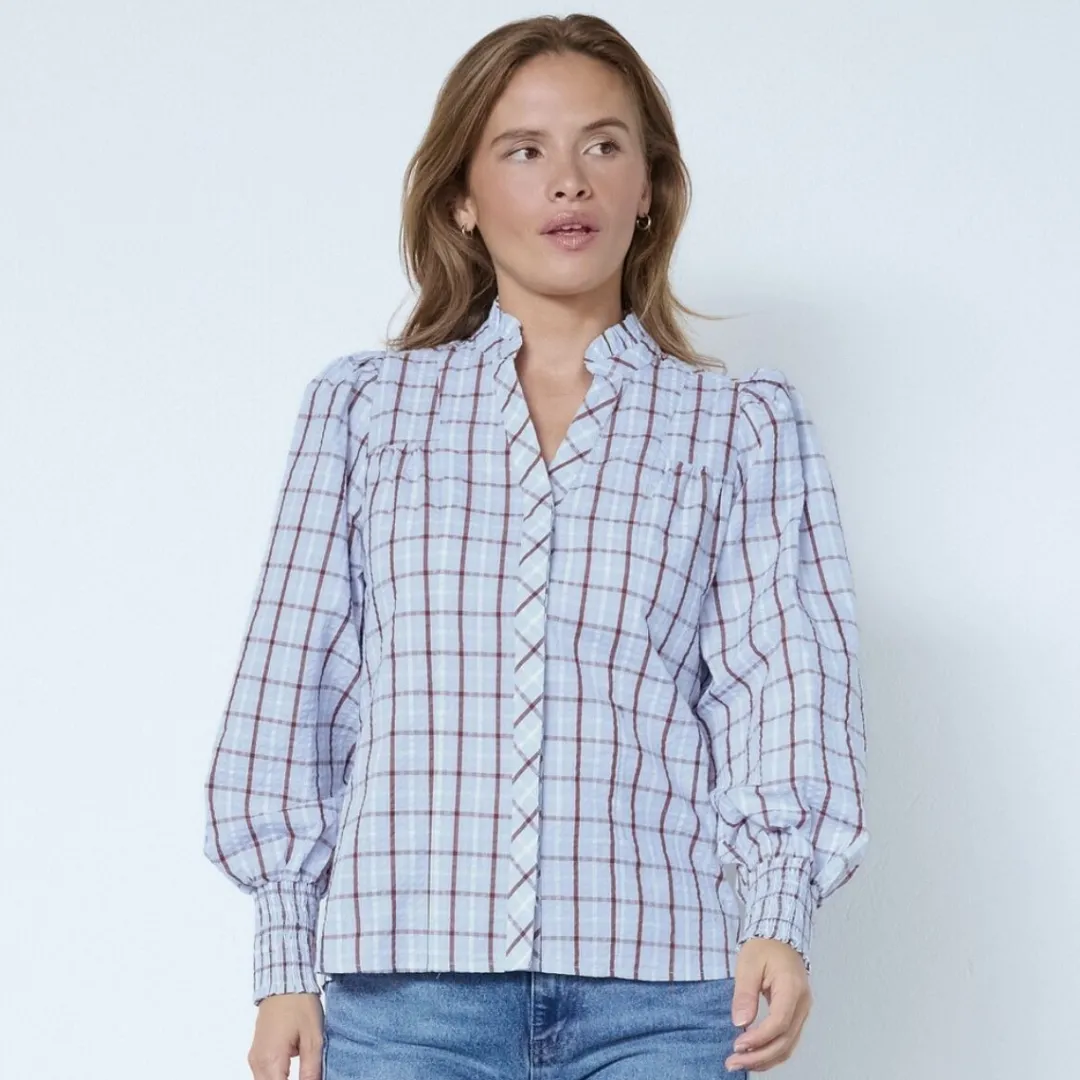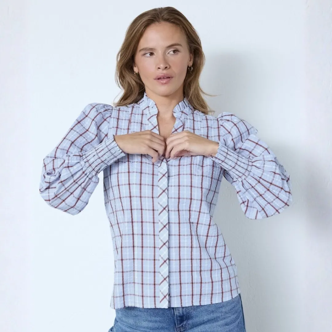 Farve: lyseblå, creme, brun