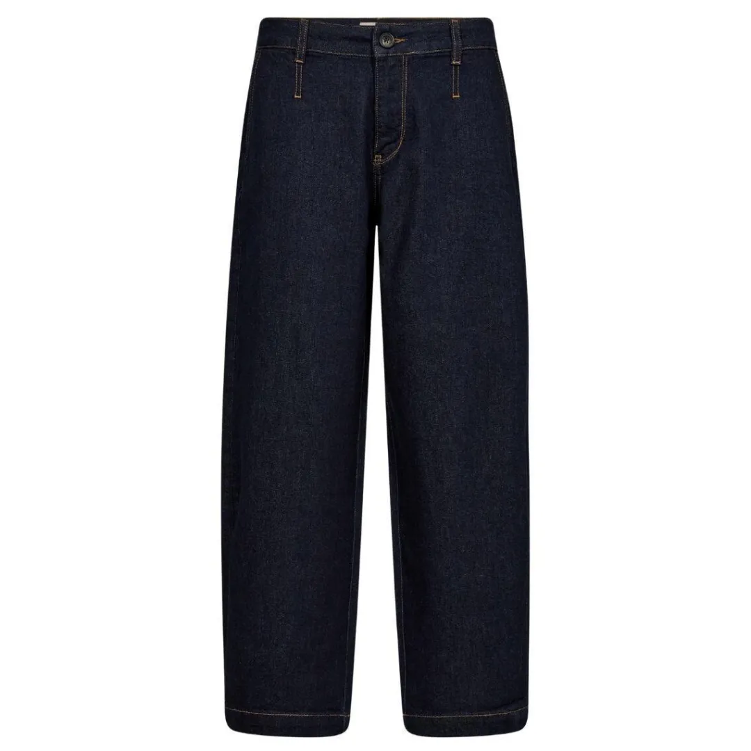 De super fine Tino Chino jeans i denim fra Mos Mosh. Jeansene er inspirerede af chino modellen og designet i en flot mørk blå denimkvalitet med orange kontrastsyninger. Den har fast linning med stropper til et bælte og lukkes med lynlås og en dekorativ knap. Derudover er der to baglommer med klap og knap og de vide ben går en smule ind forneden. Must have til sæsonens jeans samling.