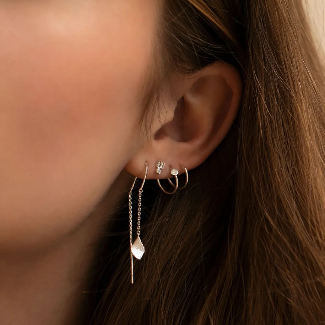 Smuk ørering fra Stine A med kæde foran og bagpå med et lille blad.