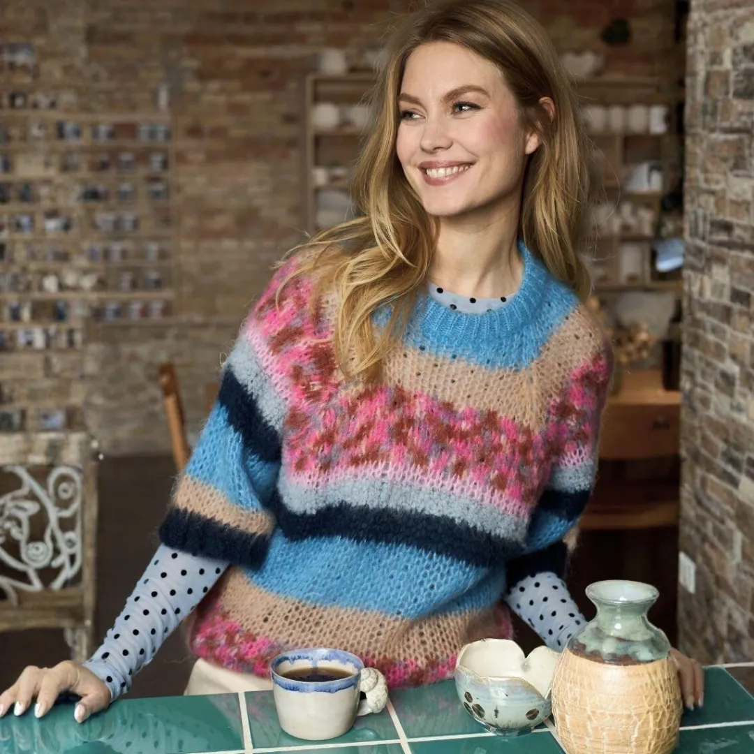 Farve: blå, rosa, pink, grå, brun