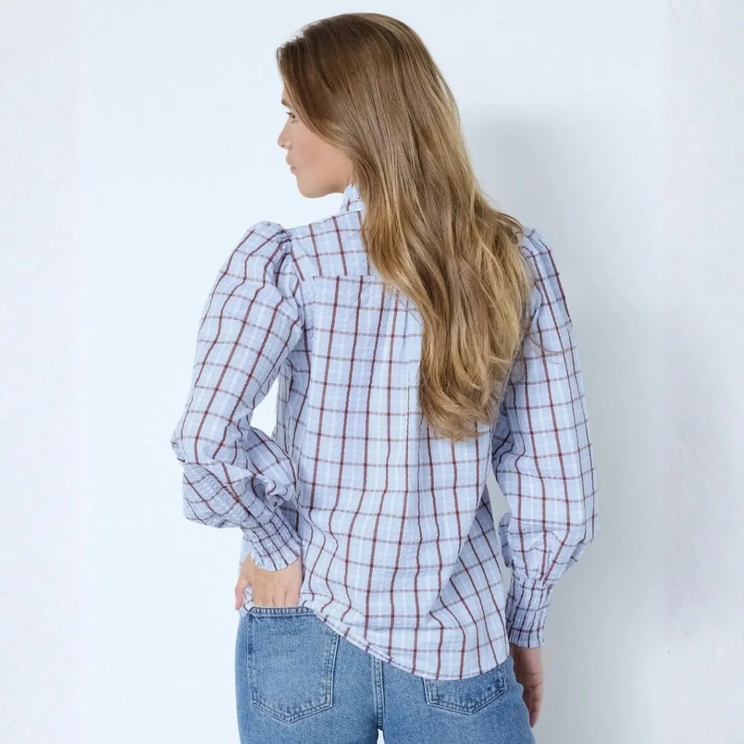 Farve: lyseblå, creme, brun
