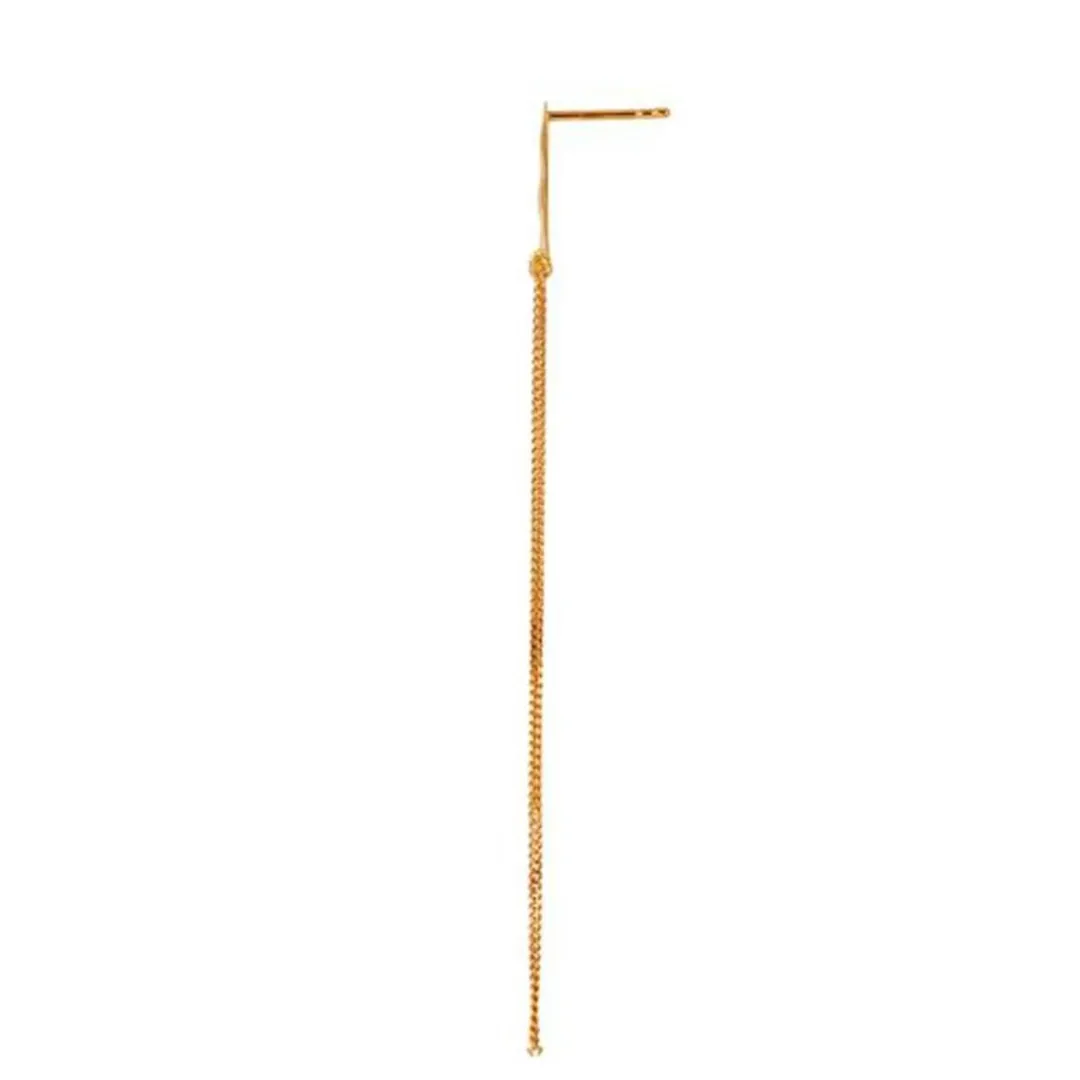 Smuk guld ørestik med en halvmåne foroven fra Stine A. Ørestikken har to kæder i forskellige længder som vedhæng på halvmånen.