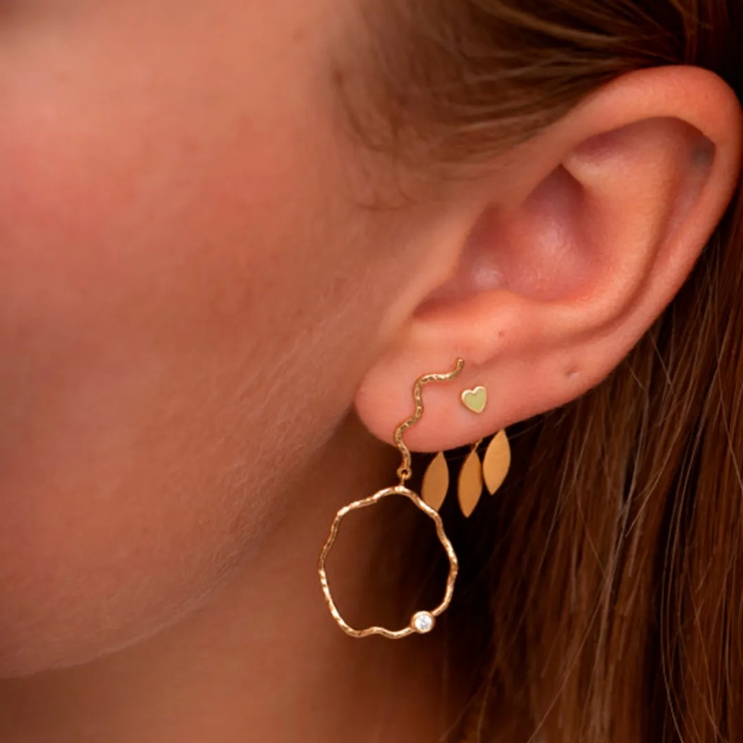 Smuk lille hjerteørestik med olivengrøn emalje i hjertet fra Stine A. Findes i flere farver.